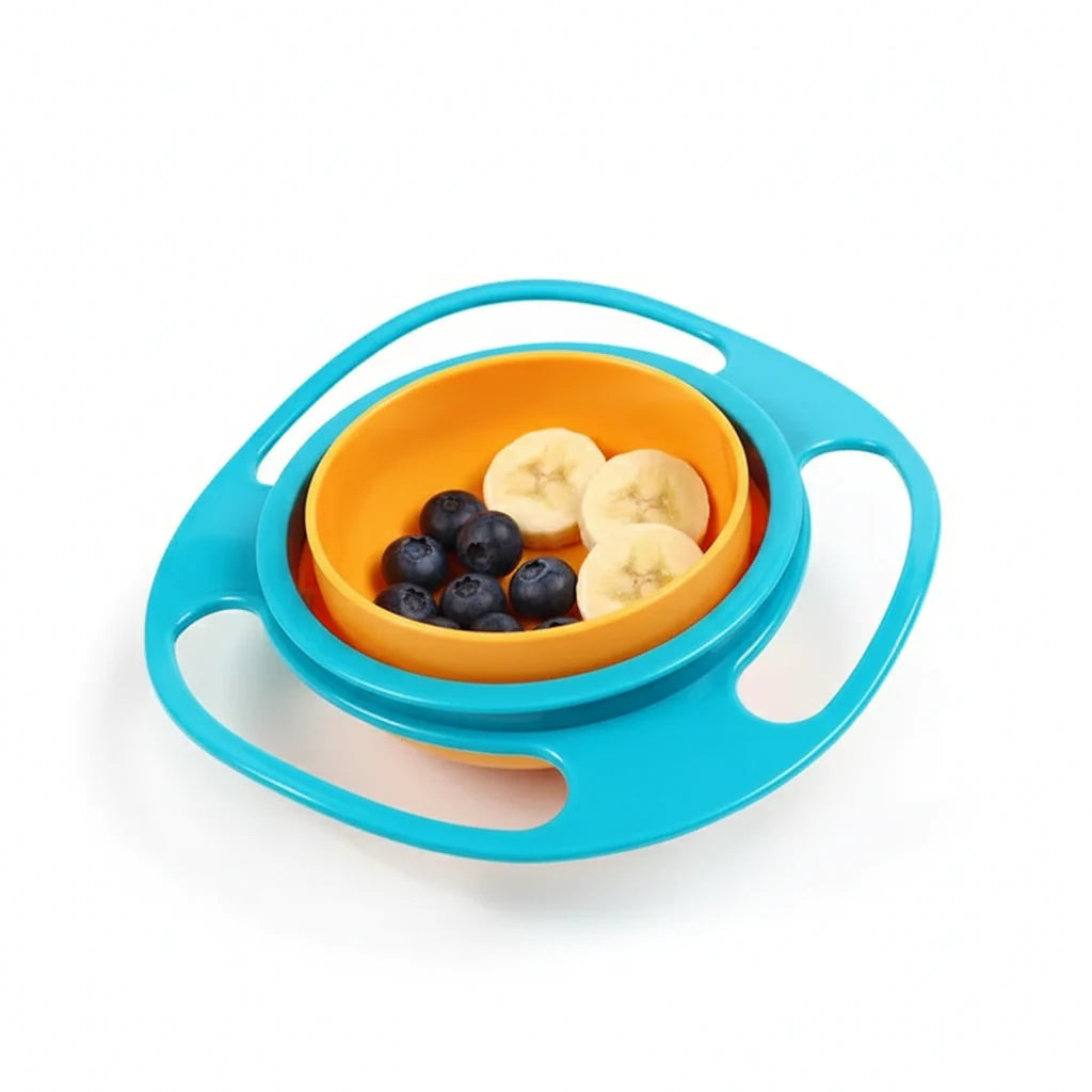 De Kinderkom wordt geleverd met een anti-morsontwerp waarbij de binnenkom 360° draait in gyroscopische beweging om voedsel binnen te houden en morsen te voorkomen. Het heeft ook 3 handvatten voor gemakkelijk dragen en een deksel om voedsel af te dekken wanneer het niet in gebruik is. Zo blijft het eten ín de kom, ook als je peuter wiebelt, draait of de kom ondersteboven houdt.