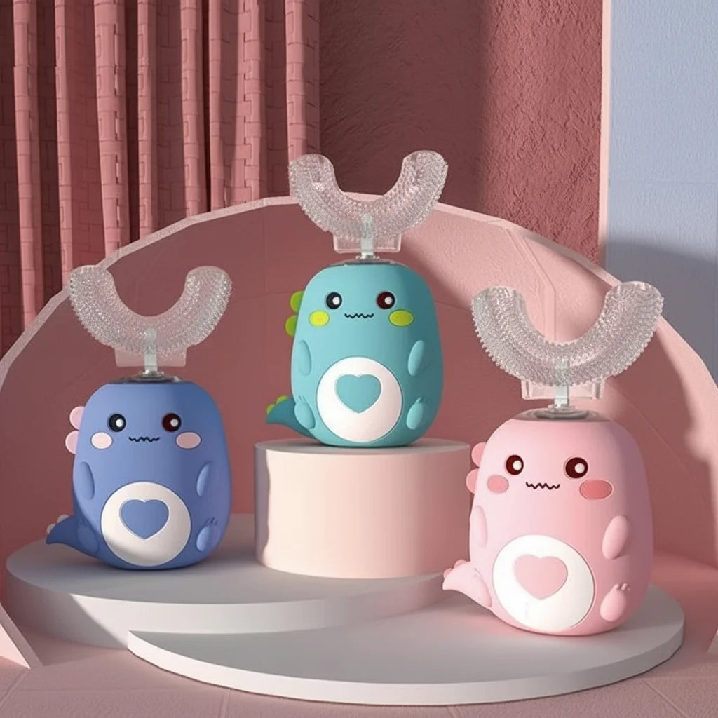 Deze elektrische tandenborstel heeft een U-vormig ontwerp met 360° dekking, waardoor meerdere tanden tegelijk worden bereikt. De zachte elektrische trillingen ondersteunen een gelijkmatige reiniging, ook op plekken die bij handmatig poetsen soms worden overgeslagen. Dit maakt de tandenborstel geschikt voor jonge kinderen die nog leren poetsen.