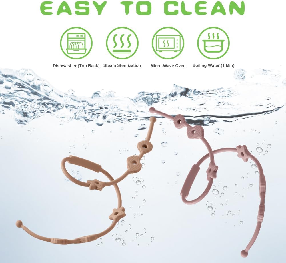 - Materiaal: voedselveilig siliconen. Gemaakt van voedselveilige siliconen, 100% BPA-vrij. Het siliconenmateriaal kan ook als bijtspeelgoed voor baby's worden gebruikt, zonder je zorgen te hoeven maken over het spelen of kauwen van de baby, en het kan de baby ook helpen bij tandengroei.