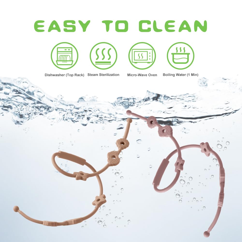 - Herbruikbare riemen voor aan kinderwagen: ze zijn elastisch, waterdicht, gemakkelijk te reinigen, kunnen gekookt worden, zijn vaatwasserbestendig; herbruikbaar, milieuvriendelijk en geldbesparend.